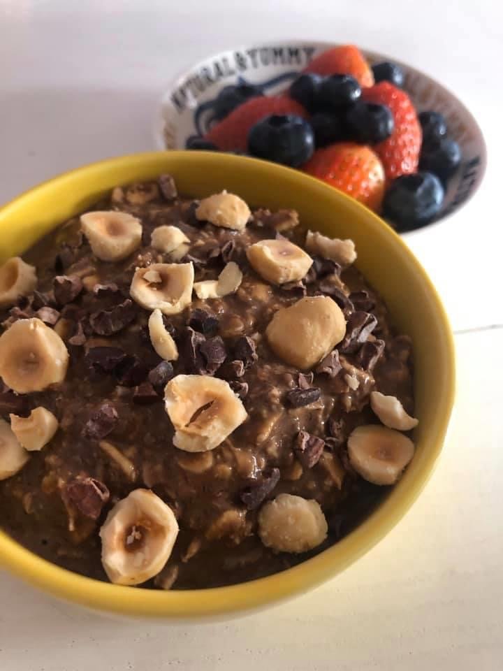 (原片燕麥 奇異籽 無糖杏仁奶 無糖朱古力粉 亞麻籽粉 榛子 生可可碎 stevia 鹽)