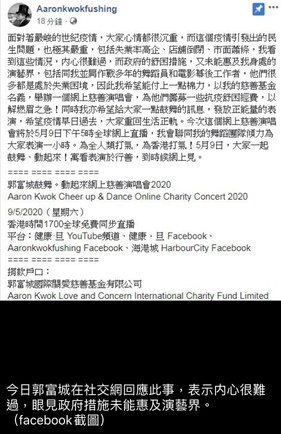 今日下午5時「郭富城鼓舞‧動起來網上慈善演唱會」,郭富城將聯同近百位舞蹈員傾力唱跳一小時,為受疫情影響的舞蹈員出一分力!
