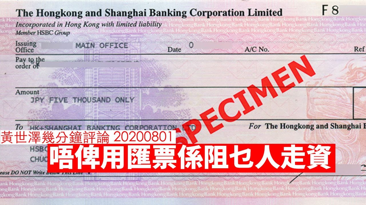 剛睇完黃世澤,佢意思大約係如果有人緊急想逃離香港,但佢未開到離岸戶口,咁佢可以用匯票先將家當換成當地款項(例如bno holders去英國,先係香港換英鎊匯票再走佬)。而家銀行ban左匯票,就係針對無離岸戶口、用唔到TT、又要帶筆錢走佬嘅人,即刻係可見將來會出現嘅一大批香港難民。