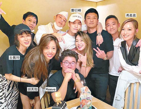 從網上流傳的派對照片及短片可見,眾人飲到面紅耳赤,明顯相當盡興,當中美貽坐在Reeve身邊陪切蛋糕,猶如女主人。盈盈與鄭衍峰亦相當甜蜜,連食水果都對着鏡頭甜笑,及後眾人碰杯飲啤酒時,兩人仍肩並肩,不過影大合照就刻意分開企,反而有另一名男友人搭住盈盈膊頭,狀甚老友,明顯她已成功混入富二代朋友圈中!