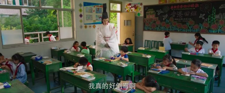 時光跟褚嬴初遇的翌日,褚嬴跟著時光上學。在片段中可以看見,時光班上後方用黑板畫熱烈慶賀香港回歸。