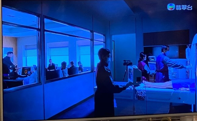 一出廳就見到呢幕,推病人照MRI ,道具認真到放個鐵架吊鹽水,維生指數機又有鐵架