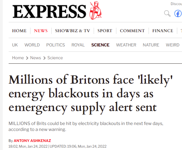英國有機會停電, 請做好準備.
