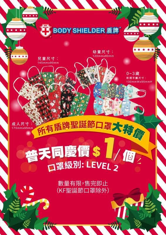 臨近聖誕節,盾牌推出聖誕節口罩優惠,每個低至$1!仲未為今個聖誕節造型預備口罩,就要趁最後機會去選購!