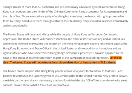 Pompeo係美國立立亂都仲記得香港,唔話得,親, 呢個係光榮