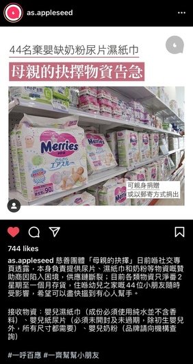 一直有人sponsor 尿片,但呢個人都sponsor 唔到,個機構咪叫人捐。