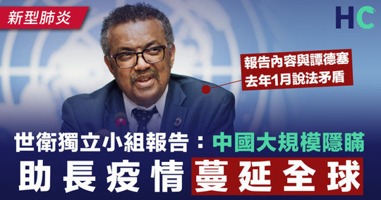 肺炎 全球疫情持續一年,世界衛生組織 (WHO) 在去年成立的獨立小組,經過長達數月的調查後,公布調查結果指中國去年1月可採取更快的行動,及實施更強而有力的公共衛生措施來避免災難,但令人遺憾的是「中國大規模的疫情隱瞞,助長新型肺炎蔓延全球」。