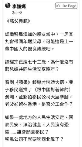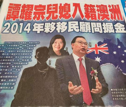 譚耀宗兒媳入籍澳洲 2014年夥移民顧問掘金