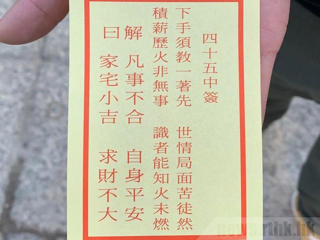 鄉議局主席劉業強在車公廟為香港求得第四十五籤的中籤,籤文是「下手須教一著先,世情局面苦徒然;積薪歷火非無事,識者能知火未燃」。 解籤師傅陳天恩表示,車公認為政府抗疫措施舉棋不定,希望當局一氣呵成解決疫情,否則出現第5波、第6波疫情才知錯,經濟將更加會走下坡、市民會更惶恐。 陳天恩又說,車公認為當局早...