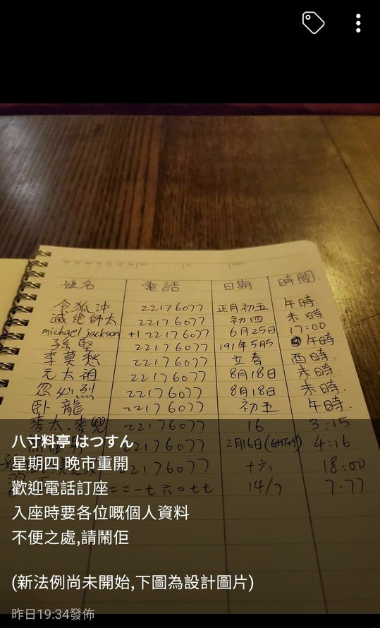 應該係嗰間餐廳嘅電話號碼,大坑某日本餐廳~