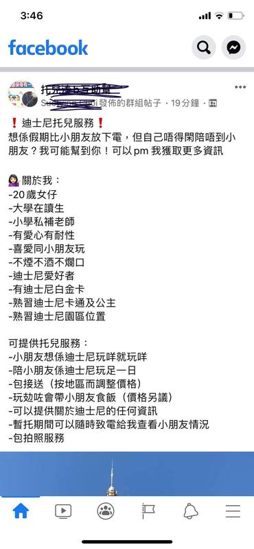 雖然我唔會幫襯,因為我小朋友唔鍾意去迪士尼,同埋我D小朋友其實都想父母陪。但話唔定真係有人有呢個需要呢?疫情期間可能有d父母真係有一日有特別事做,而家好多托兒都關門,可能真係用得著。