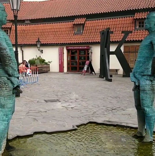 兩個男人輪流小便(真係有水出), 就係成為左一個小型噴水池