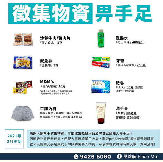 係時候要檢討份清單,呢d日用品係基本需要,無理由剝削在囚人士使用既權利
