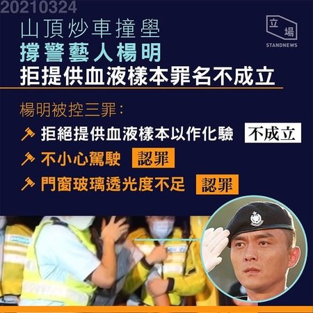 【最新】藝人楊明被控不小心駕駛,押後至下月14日等候索取背景報告,期間要還柙