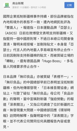有啲品牌應該係大6分公司擅自出聲明撐新疆棉,總部開會後撤回,但無印係真心連日本總部都奶