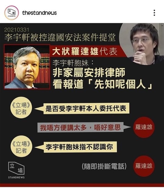 香港仲邊有法治或者法律吖, 唔俾屋企人見, 唔俾屋企人幫佢搵律師, 連屋企人都唔知有喱個律師, 咁喱個所謂嘅律師幫李宇軒認埋罪話係李宇軒同意都得嫁啦, 使乜審啫, 總知鬼国話你有罪, 你就係有罪
