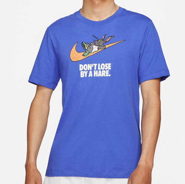 近期Nike推出一件新款T-Shirt,以知名寓言童話「龜兔賽跑」為主題,描繪了一隻兔子