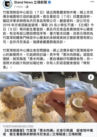 諗起以前飯盒啲 um 左幾個鐘已經黃曬嘅菜,啲飯凍硬到變成一磚,唔開胃。不過見到隔離營啲飯,我覺得學校飯盒都唔係咁差了。