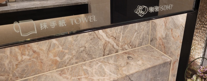 唔記得邊度,一個洗手盤兩個自動龍頭,一邊出洗手液一邊出水,洗洗下水會出洗手液,又要再洗過。