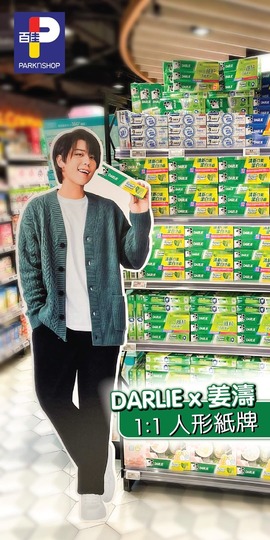 由即日起至5月12日,於屈臣氏網店及指定門市購買任何DARLIE產品*,即送你一張姜濤透明閃卡