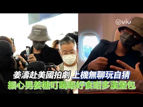 姜濤赴美國拍劇 上機無聊玩自猜 細心男姜糖叮囑唔好食咁多漢堡包
