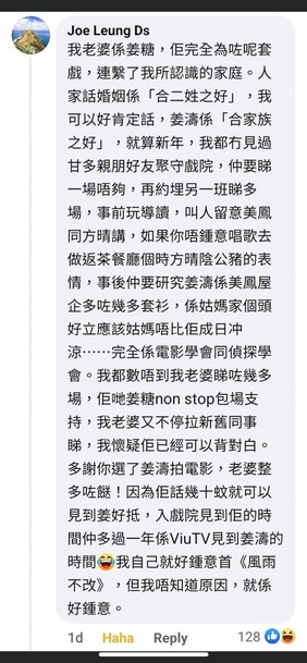 意思是姜濤某程度上在飾演自己(除了家庭關係)。