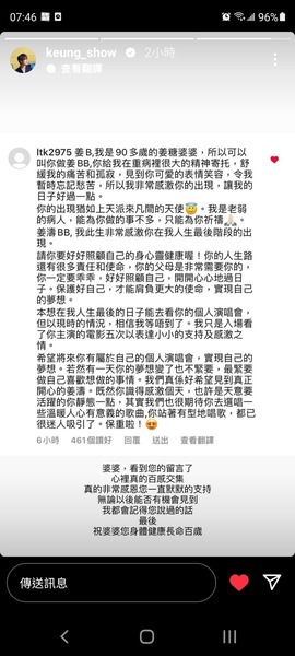 希望婆婆身體健康,可以早日睇到姜濤個人演唱會