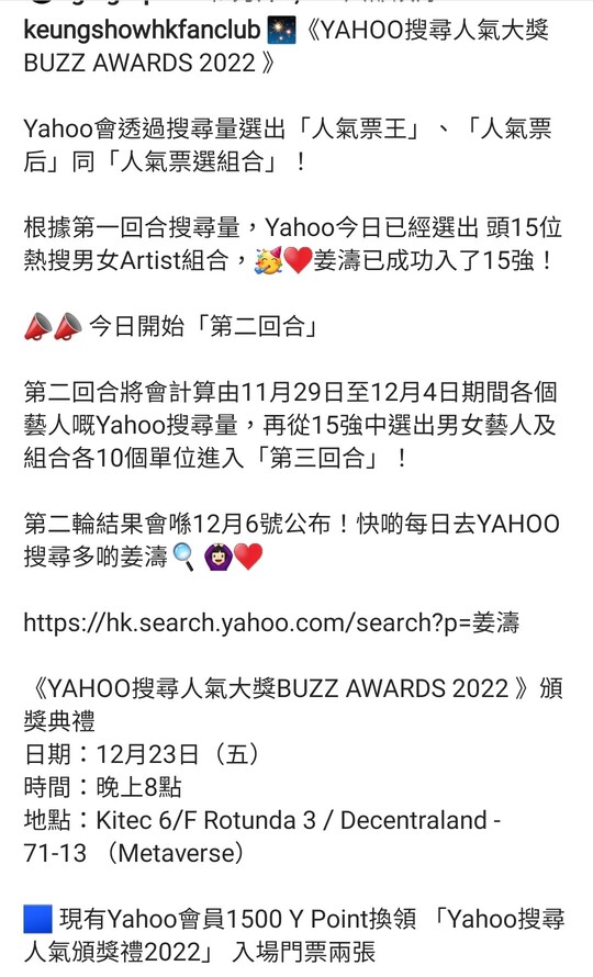 希望你可以順利投到姜濤,記得今個星期五中午12時截止(香港時間)