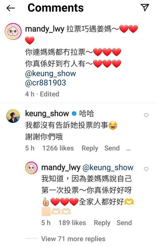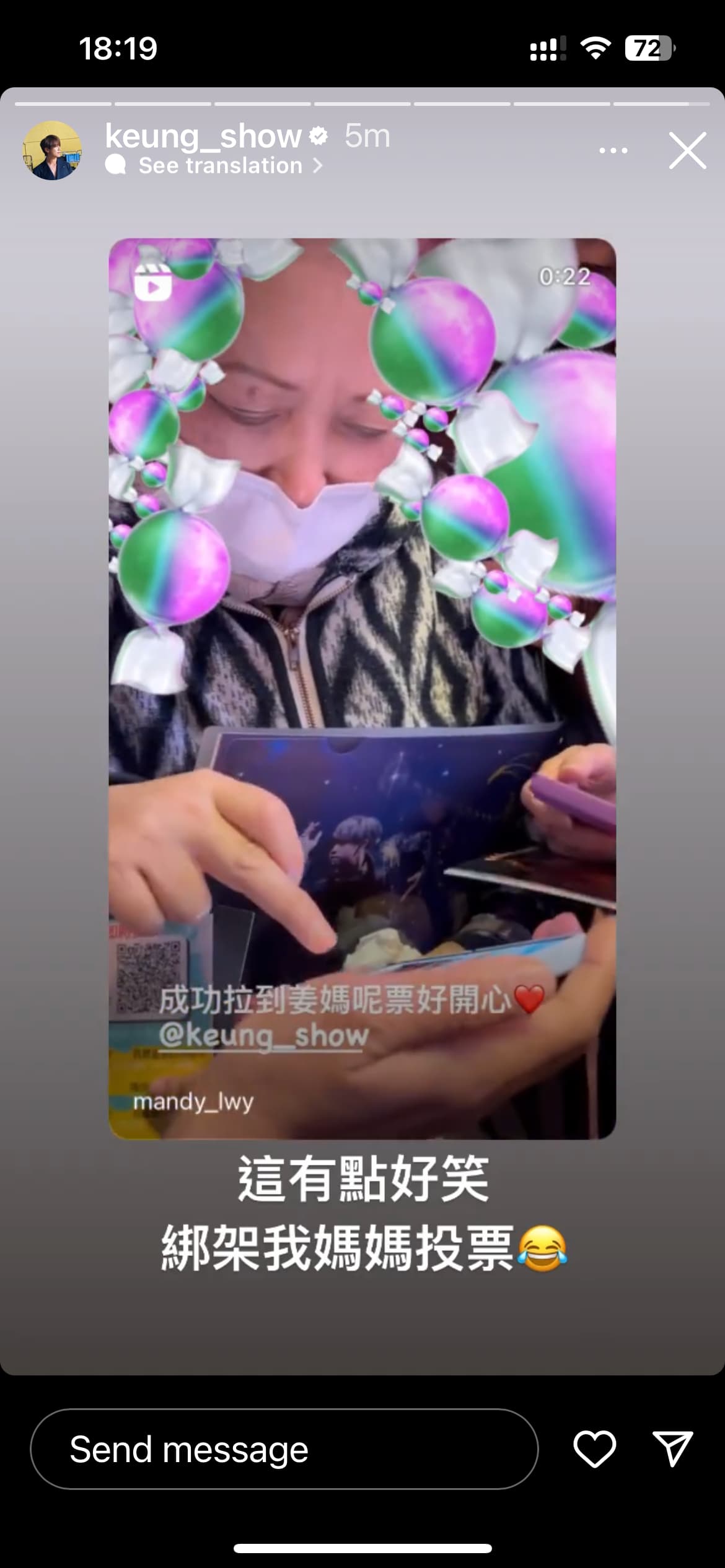 d姜糖捉住姜媽媽教佢投票,姜連屋企人都無叫佢地投票,佢家人真係唔係對獎項睇得好重,好似世外高人。