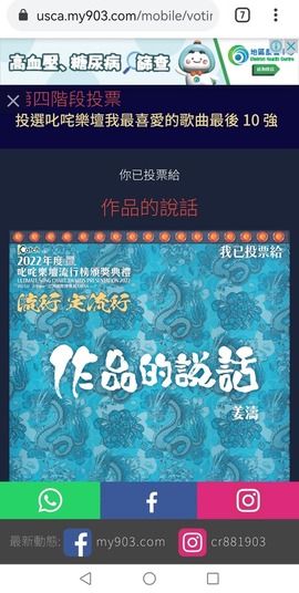 叱吒投票我最喜愛歌曲,姜濤-作品的說話,大家投票