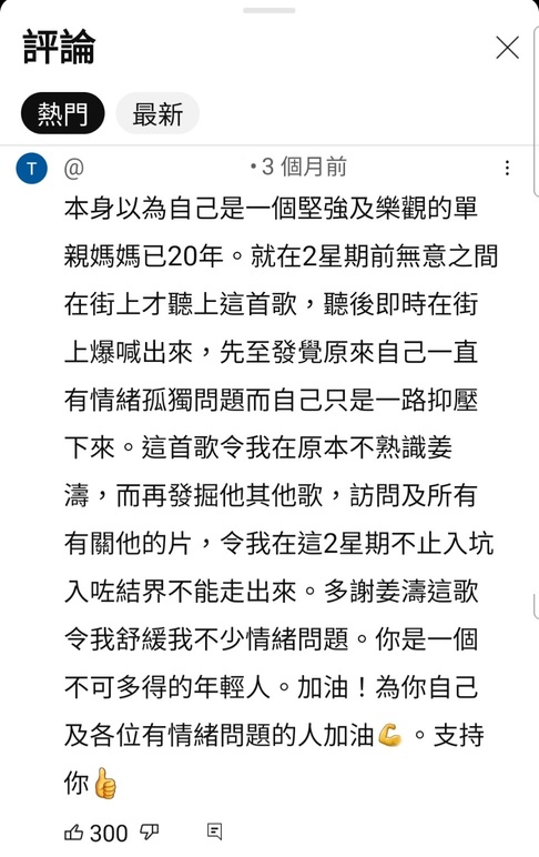 尋日喺YT聽《孤獨病》無意中見到呢個comment