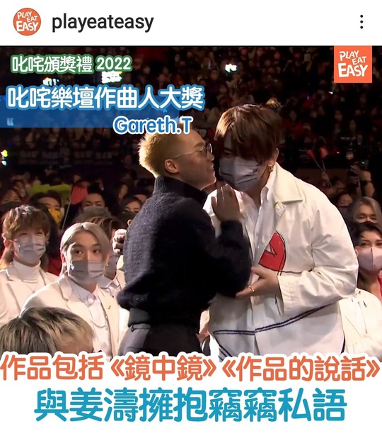 【2022叱咤頒獎禮】專業推介叱咤十大頒發完畢,叱咤樂壇作曲人大獎落在同時為歌手身份的Gareth.T手中!除了《勁浪漫超溫馨》,姜濤其中2首重要的作品《鏡中鏡》與《作品的說話》也是Gareth.T的作曲作品。Gareth.T特意走到姜濤前,老友鬼鬼擁抱,仲竊竊私語,唔知同對方講乜呢~
