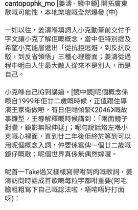 這是首好作品。因為好作品也像鏡一樣,給你重新審視自己。然後在認清自己之後,找到一路適合自己的路。在這樣的世道,能夠有這種自我發現已經是種莫大的福氣。至於運程吉凶、順逆起伏,就用小克先生的另一首詞的一句來說明,「繁星怎麼要發光自有分曉」。在虎年將至的一天,祝大家都平安健康。