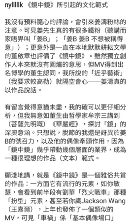 “鏡中鏡”更加係佢同製作團隊由零開始砌出嚟, 佢無論對音樂風格, 定係首歌想帶出嚟嘅message都好有主見, 又勇於創新, 突破 ![]()