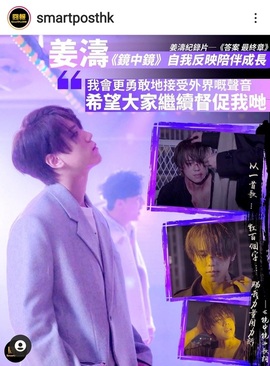 MIRROR成員薑濤的個人紀錄片《答案》昨晚(25日)播出最終章,片段開頭他提到不喜歡「薑濤」、「薑B」這個名字,亦曾向花姐提出可否改名,可惜因「薑濤」這個名字太深入民心難以更改。之後播出薑濤於《2021年度叱吒樂壇流行榜頒獎典禮》的得獎片段,或者在外界眼中,他正處於事業甚至人生的巔峰,不過薑濤卻說:「可能人哋睇我喺好高峰位置,但其實我真係跌得好低,可能你睇嘅嘢真係相反。可能你睇到嗰個人同佢真心諗嘅係完全相反,所以千祈唔好太容易定義一個人,冇人定義到。」