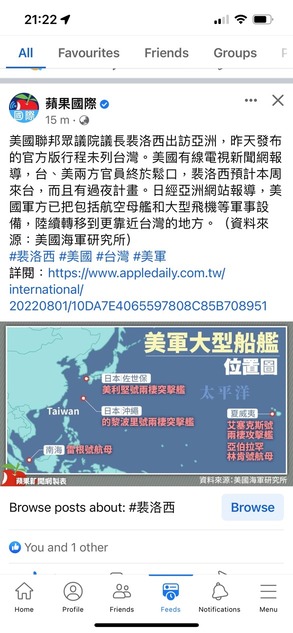 詳閱:一圖看懂|裴洛西訪台前夕 美國軍艦、軍機持續朝台灣周邊集結|蘋果新聞網|蘋果日報