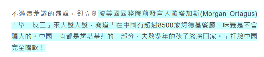 " 中國外交戰狼吃台灣人豆腐! 竟勾出美國前官員打臉 網驚:肯德基要被出征了"