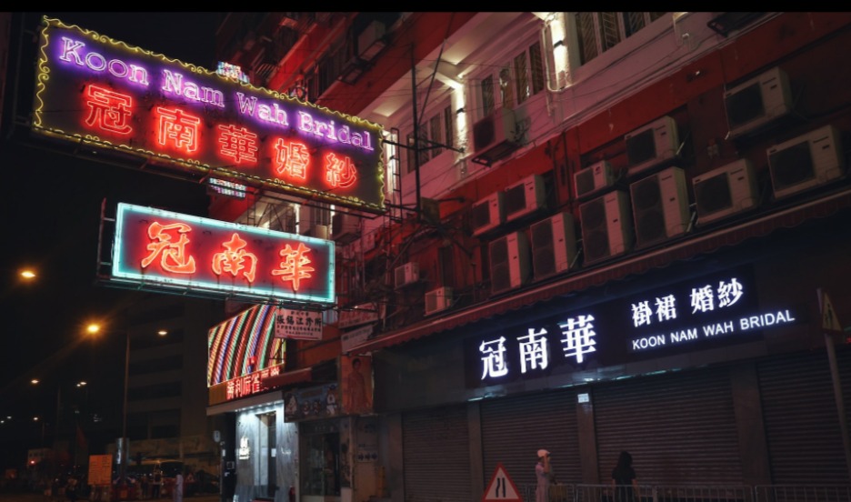 夜幕降臨時紛紛亮起的霓虹燈招牌,成為本港璀璨夜景的標誌,不過近年不少霓虹燈招牌被拆卸,逐漸式微。位於油麻地的中式裙褂老字號「冠南華」,店舖上方兩個大型霓虹燈招牌屹立近半世紀,由於招牌「成雙成對」,加上是寫有「婚紗」字眼,故亦被稱為「最幸福霓虹燈」。