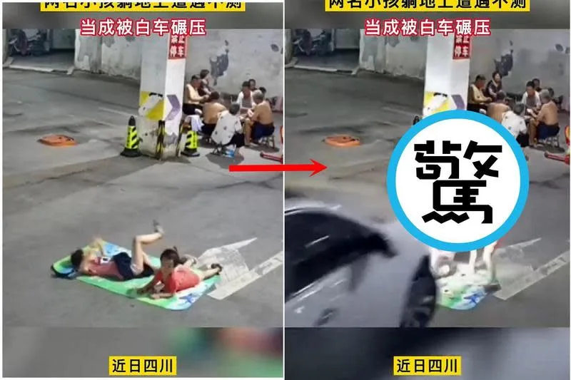 中國四川近日發生一起恐怖事故,一戶人家為了貪圖涼快,把地下停車場當成自己的家,更讓小孩直接睡在地上,結果下一秒,一輛車快速駛來,當場把2名小孩直接輾過去,導致兩人慘死。