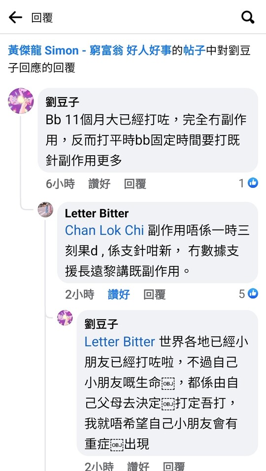 係咁話有小朋友中完死好驚, 真係無言