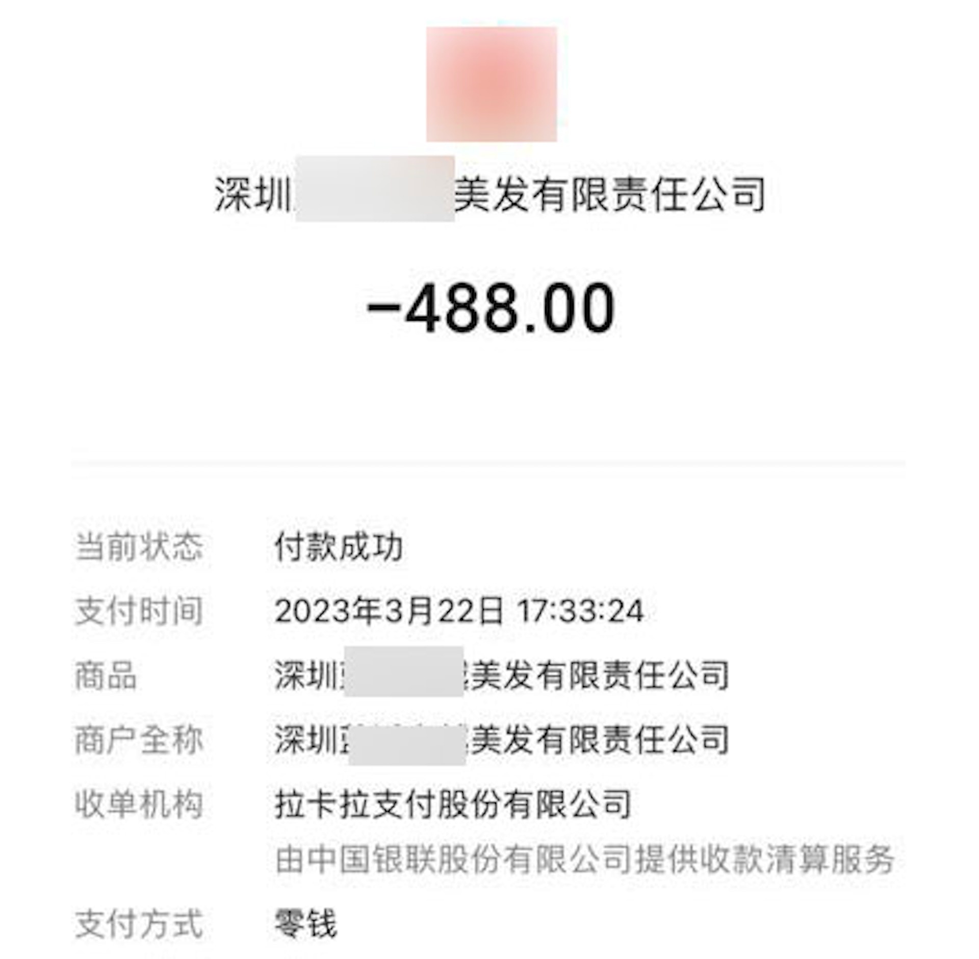 後來「髮型總監」現身向人妻講解頭髮問題,她聽罷即追問價錢,獲告知需要1,288元(約1,469港元),於是立即以「太貴」為由拒絕,但對方即時改口稱「佢話平時佢收¥3,888,今日當交朋友俾我試做價¥488」。沒想到洗頭後,髮型師只為她剪了髮尾,更稱若要修剪頭頂的頭髮,就要改收1,288元,令她大感愕然,「佢話佢收開¥3,888,所以呢¥488髮尾實屬正常,覺得我應該要用¥1,288再修個髮頂」。