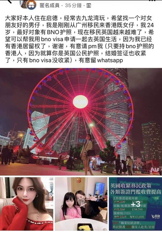 佢嚟香港可能都係用結婚方法![]()