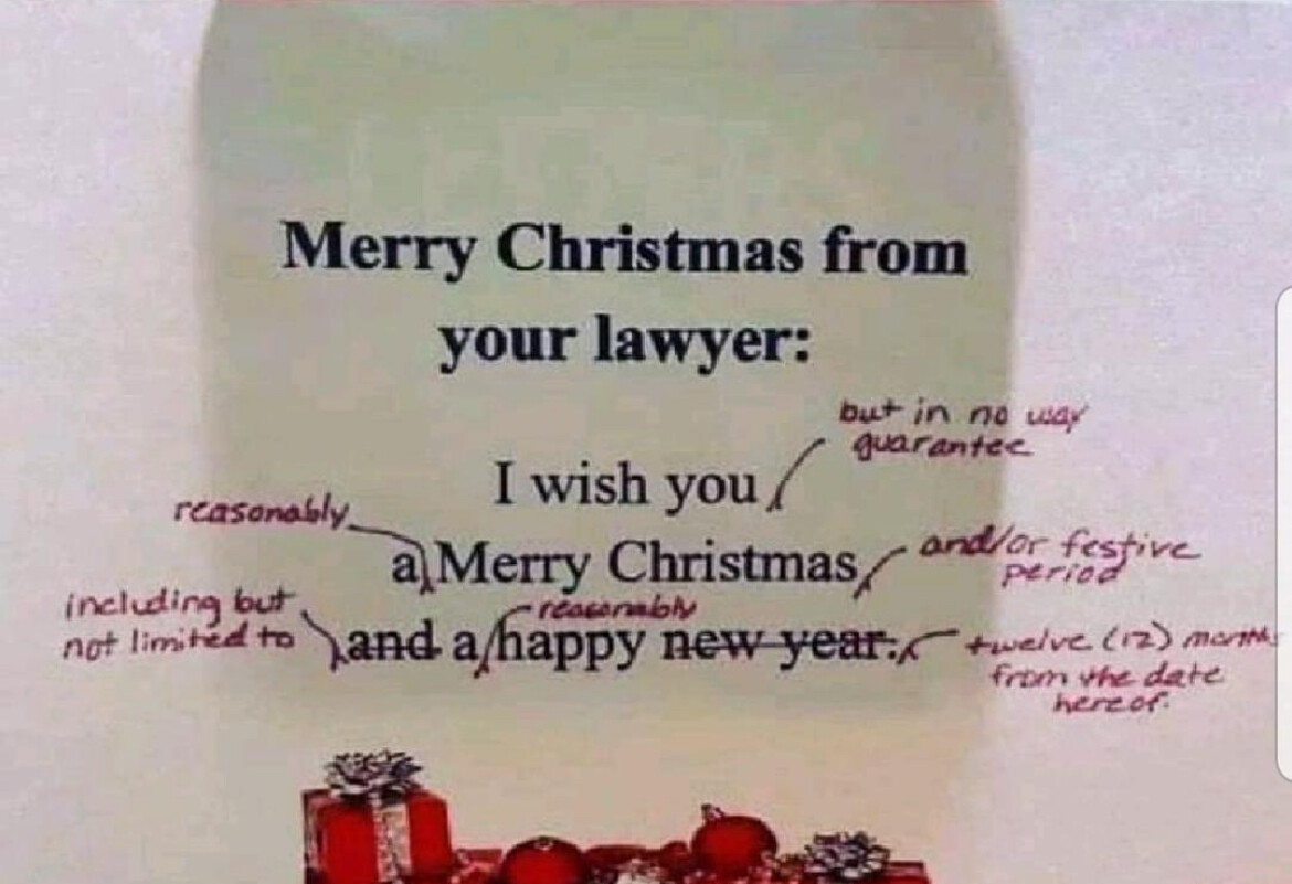 We wish you, but in no way guarantee, a reasonably merry Christmas and/or festive period including, but not limited to, a reasonably happy 12 months from the date hereof!