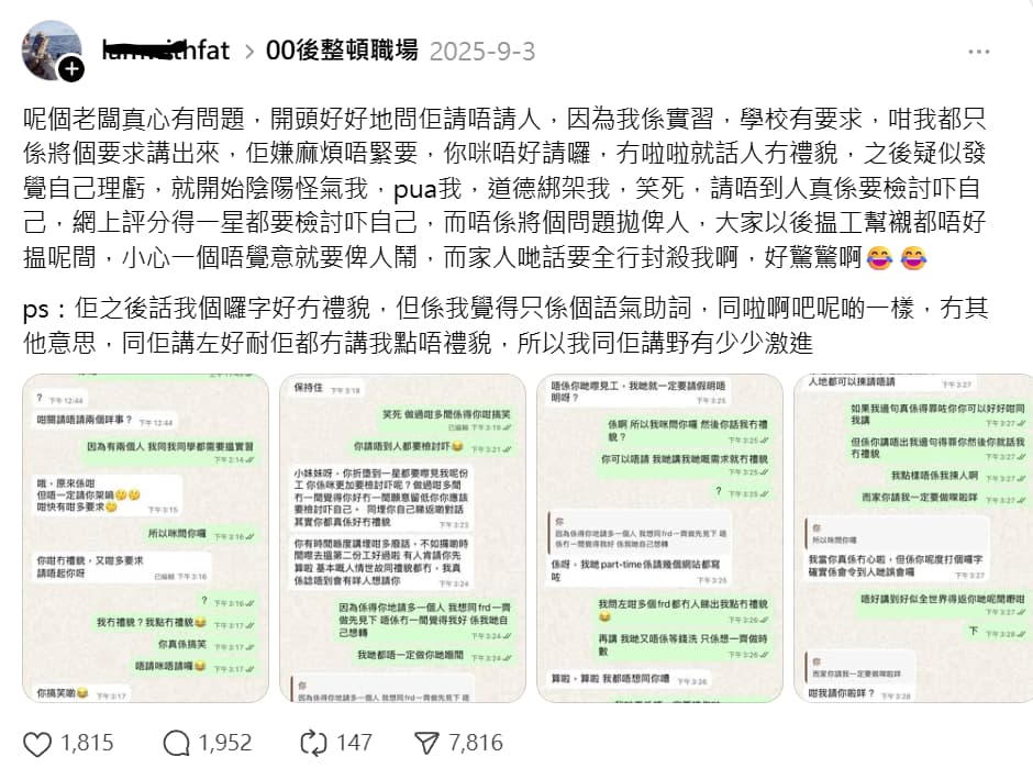 好學唔學,學埋大陸人嘅嘢,唔識尊重人,自以為是,永遠是對方錯