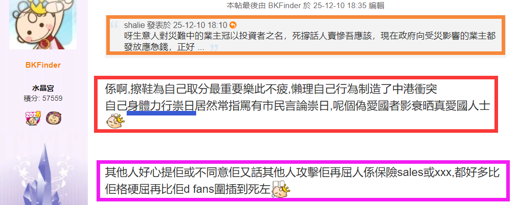 我見過有人話大力講佢爸爸係做大生意, 但有次回覆其他人就露底, 其實係做水電工程既小生意