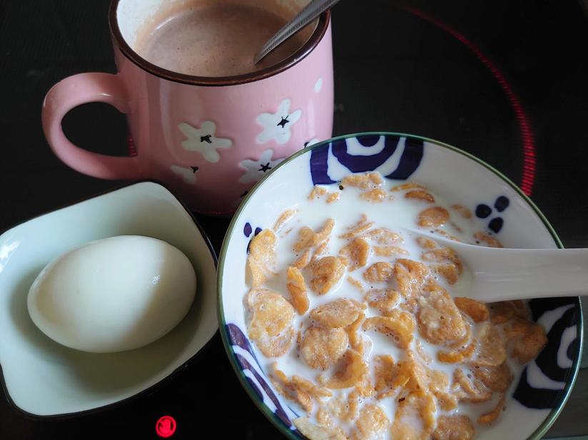 呀…早晨,我今日真係食粟米片做早餐,哈哈
